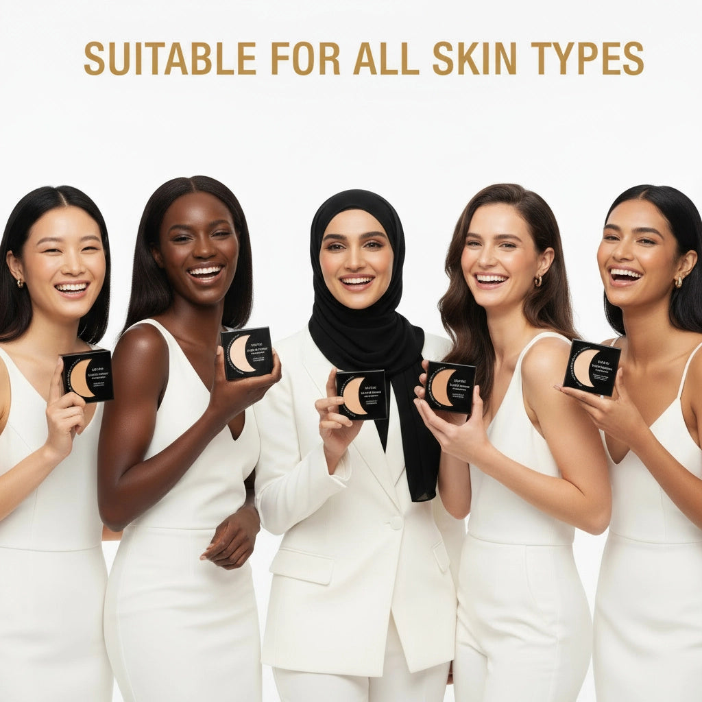 Never. Its lightweight, creamy texture absorbs instantly — no buildup, no lines, just smooth, illuminated skin.